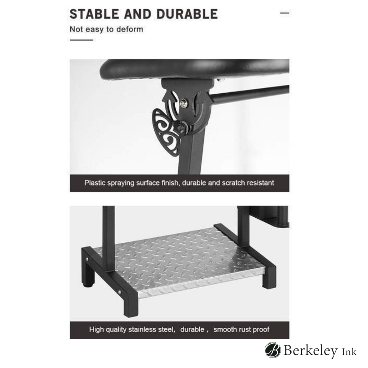 - Soporte para tatuajes. La base de hierro pesa 12 kg y proporciona estabilidad al soporte. El marco de la base es estable y antideslizante, ofreciendo un soporte completo para el reposabrazos y la pierna.