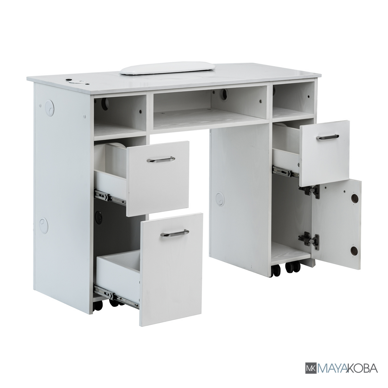 The AVIGNON Manicure Table combines elegance and practicality, designed to elevate any salon space. Featuring a luxurious marble top and durable wood construction, this table is ideal for professional manicure services. With the added benefit of built-in wheels, it ensures easy mobility, allowing for seamless adjustments to your salon layout and flexibility in use.