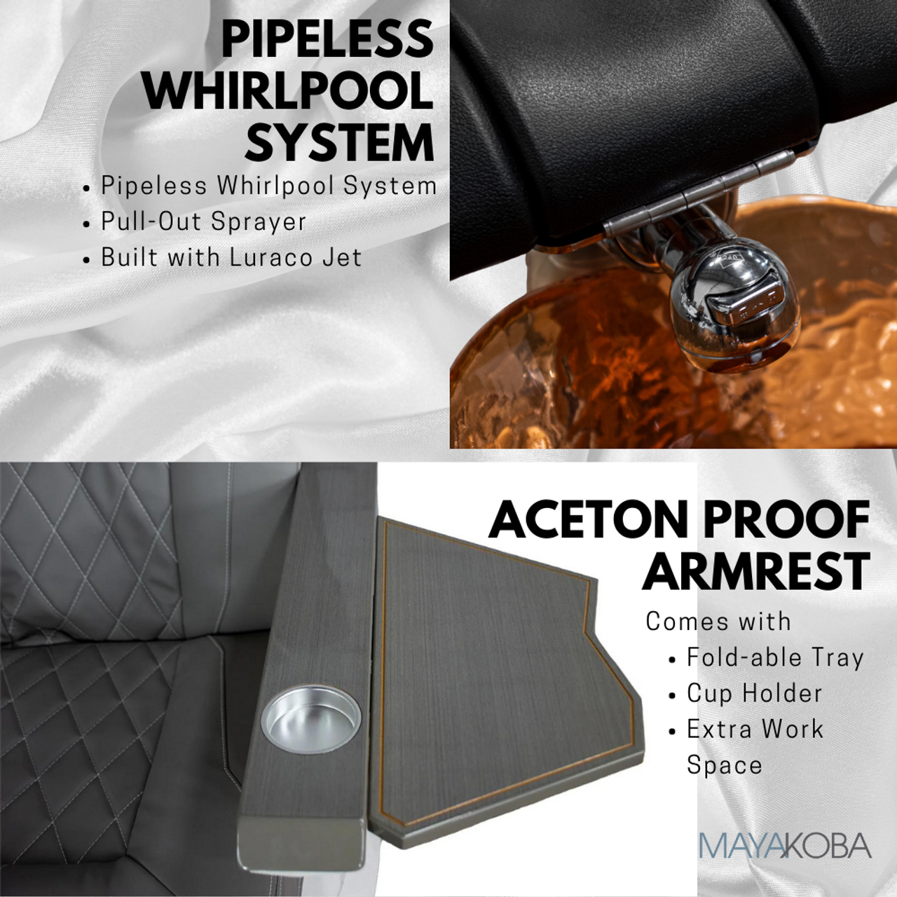 - Pipeless Whirlpool System and Pull-Out Sprayer.